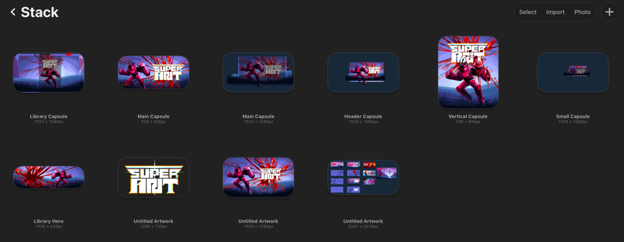 Now came the fun part of setting up my store page. To expedite this process, I wrote game descriptions and made graphical assets while waiting for my steam partnership to arrive. Steam expects 8 different capsule images all with various dimensions. To do this quickly, make one full-sized, layered asset which you can recompose over and over into these different dimensions.